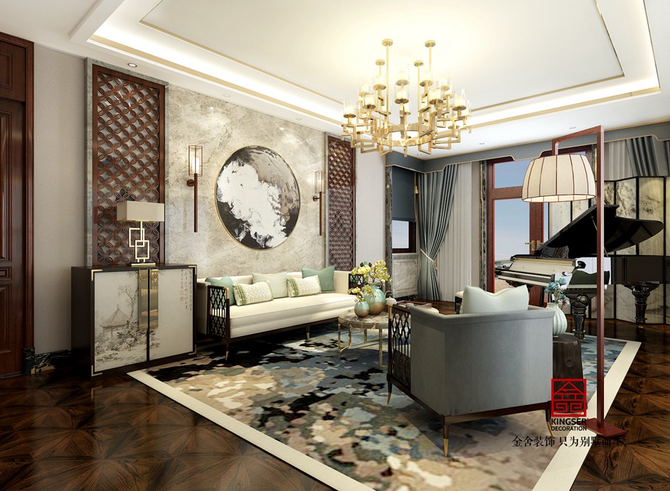 原河名墅1700㎡新中式風格別墅裝修實景