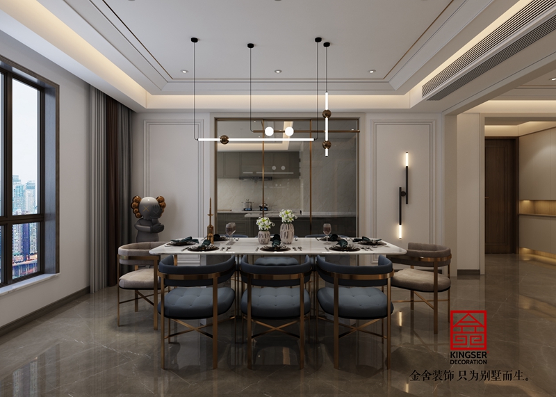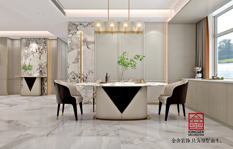 金碧天下現代輕奢風格別墅裝修餐廳效果圖