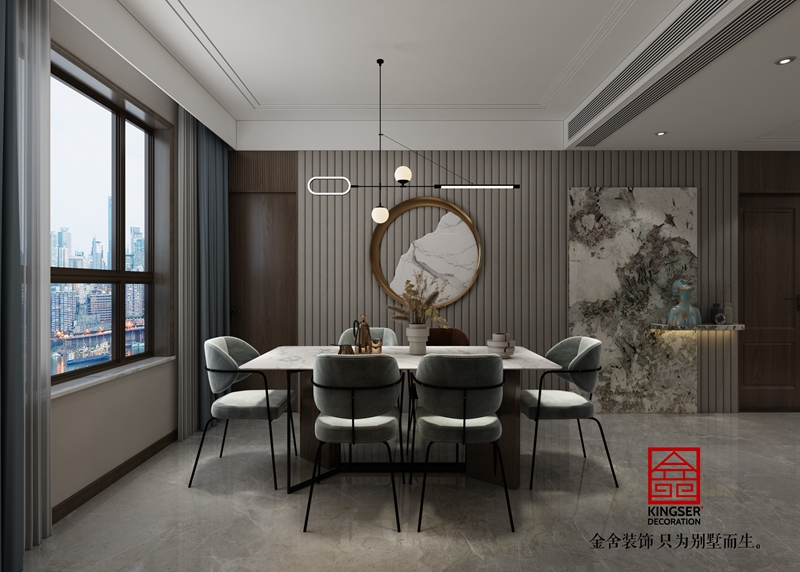 國賓壹號新中式風格躍層裝修餐廳效果圖