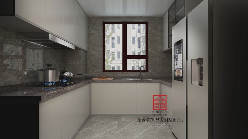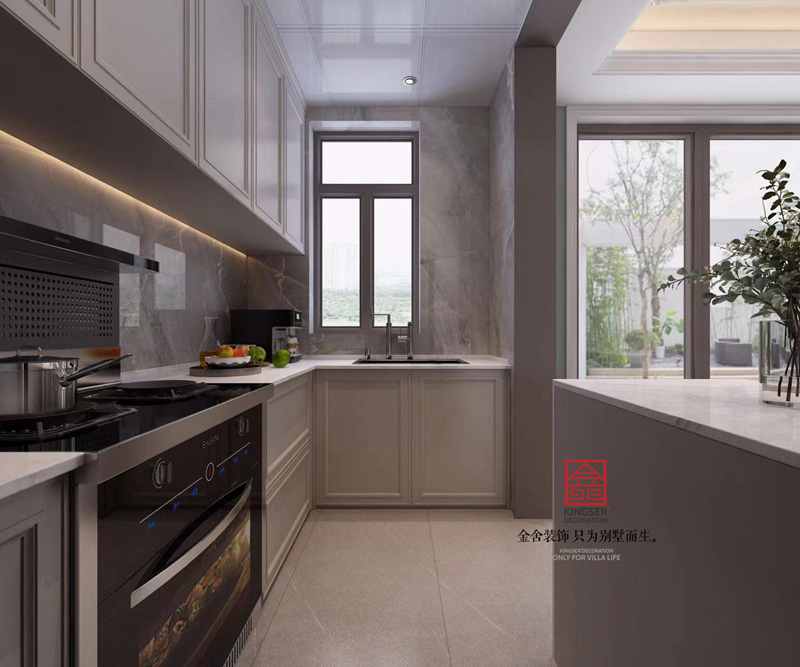 金碧天下現代輕奢風格別墅裝修廚房效果圖