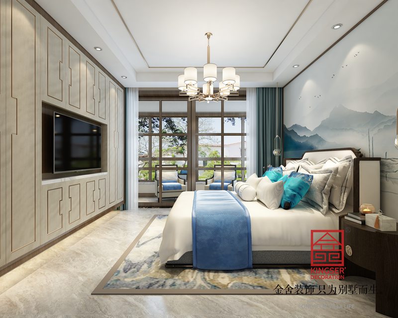 德賢華府123㎡新中式風格臥室裝修設計