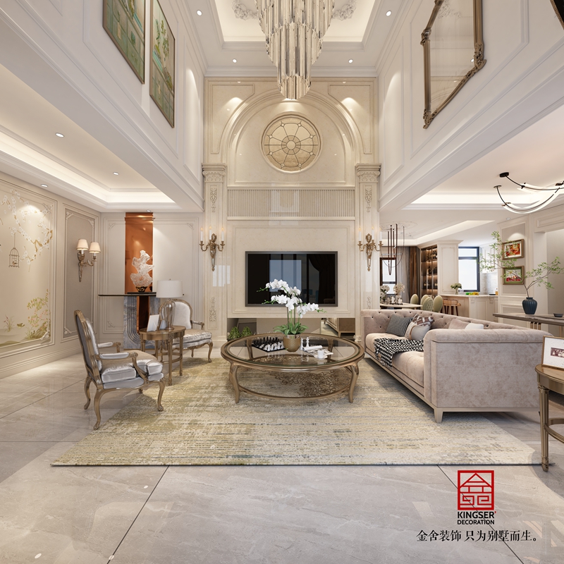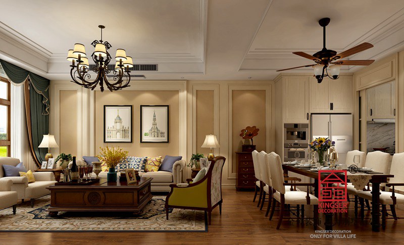 西山林語下疊裝修260平米美式輕奢風格效果圖