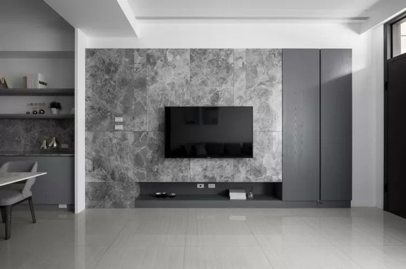 灰白紋理的大理石電視背景墻簡(jiǎn)約大氣,沒(méi)有過(guò)多的裝飾,使空間充滿簡(jiǎn)潔高雅的品質(zhì)感。