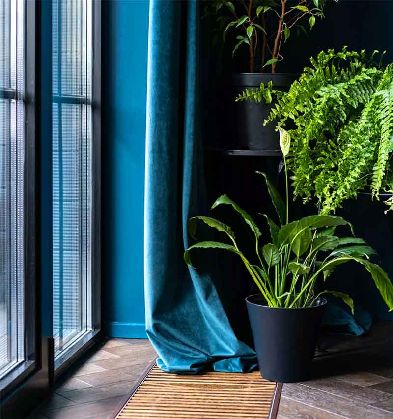 藍色對空間有極強的控制力和調(diào)節(jié)作用。它時而沉著,時而跳脫,搭配不同的色彩或不同明暗的藍,便能調(diào)和出層次分明的空間,增加一些透明度,又能使空間看起來更大、更通透。