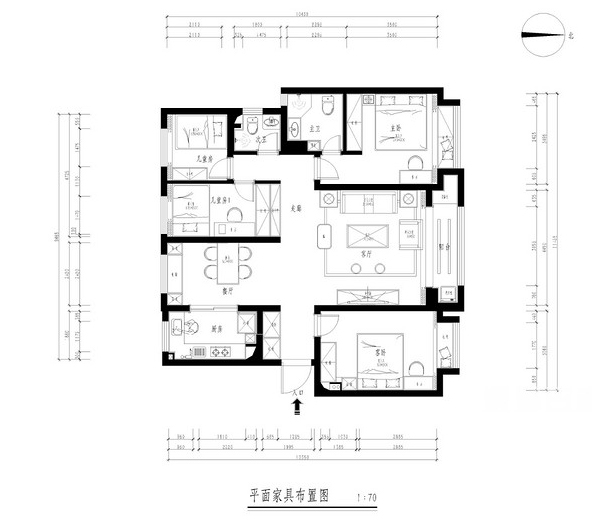 此戶型采光比較好,但是各個空間功能區(qū)域分布不明確,空間利用不充分。主臥的衣帽間空間狹窄