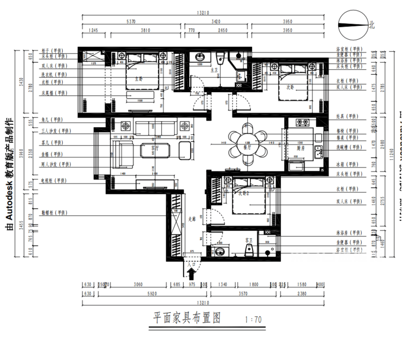 戶型優點:南北通透、室內采光好、戶型方正、空間劃分明確。