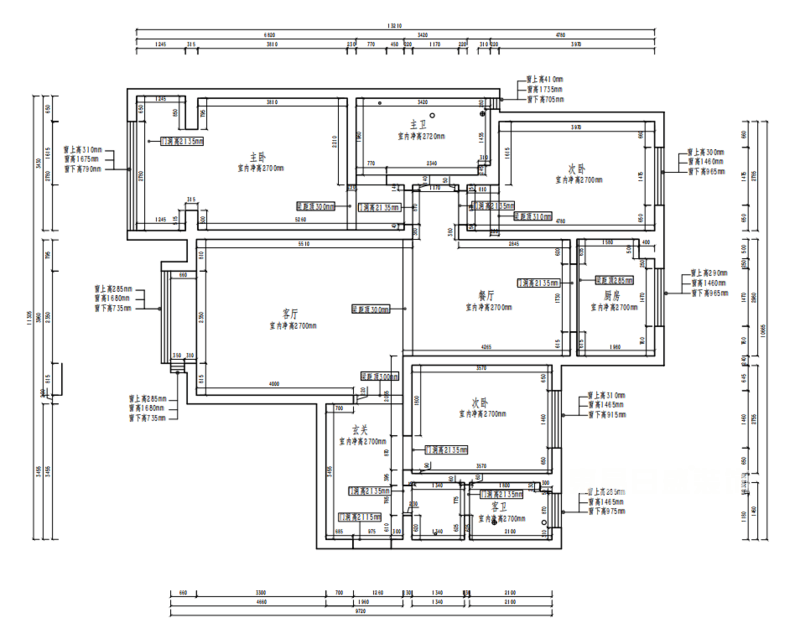 缺點:廚房空間狹小,解決方法:將廚房的墻向南移動,使廚房面積增大。