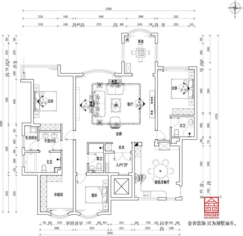 3、次衛生間的墻體統一向下挪,使淋浴等空間達到最大舒適化。