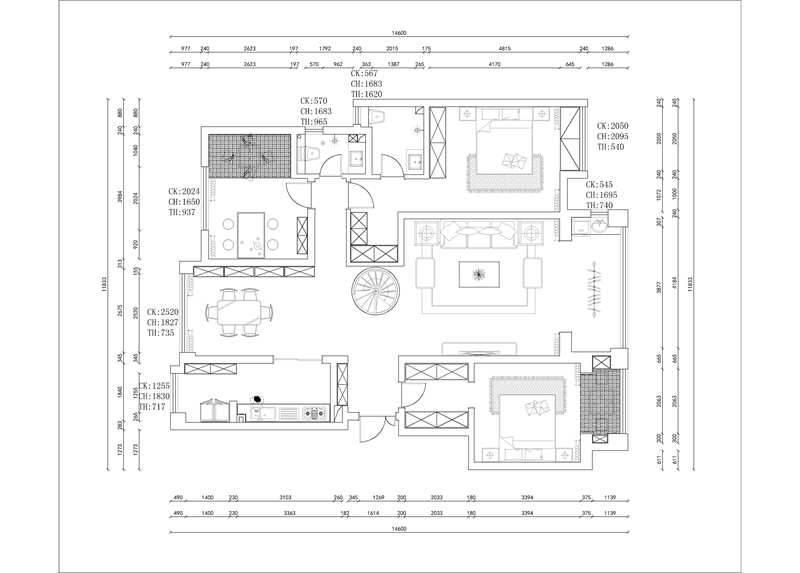 各個空間戶型方正,后期空間利用率高;整個空間全明通透,采光良好,同時利于居住空間通風;從臥室進衛生間需要穿過餐廳或客廳;客廳、臥室、衛生間和廚房等主要功能間的尺寸以及比例適中,有利于采光和通風,居住起來舒適、方便