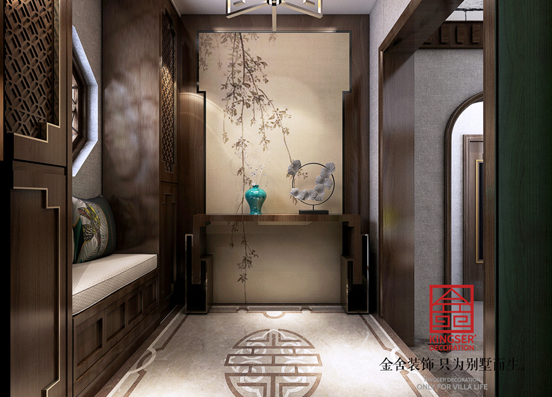 將空間分為私密與公共,動與靜。以玄關為界,前方為公共活動區域;后方為私密生活區域。