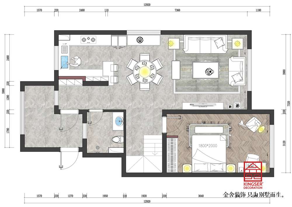1.將廚房墻垛拆掉,做成開放式廚房,引入更多光線的同時,擴大了廚房的面積,增加了吧臺功能需求。