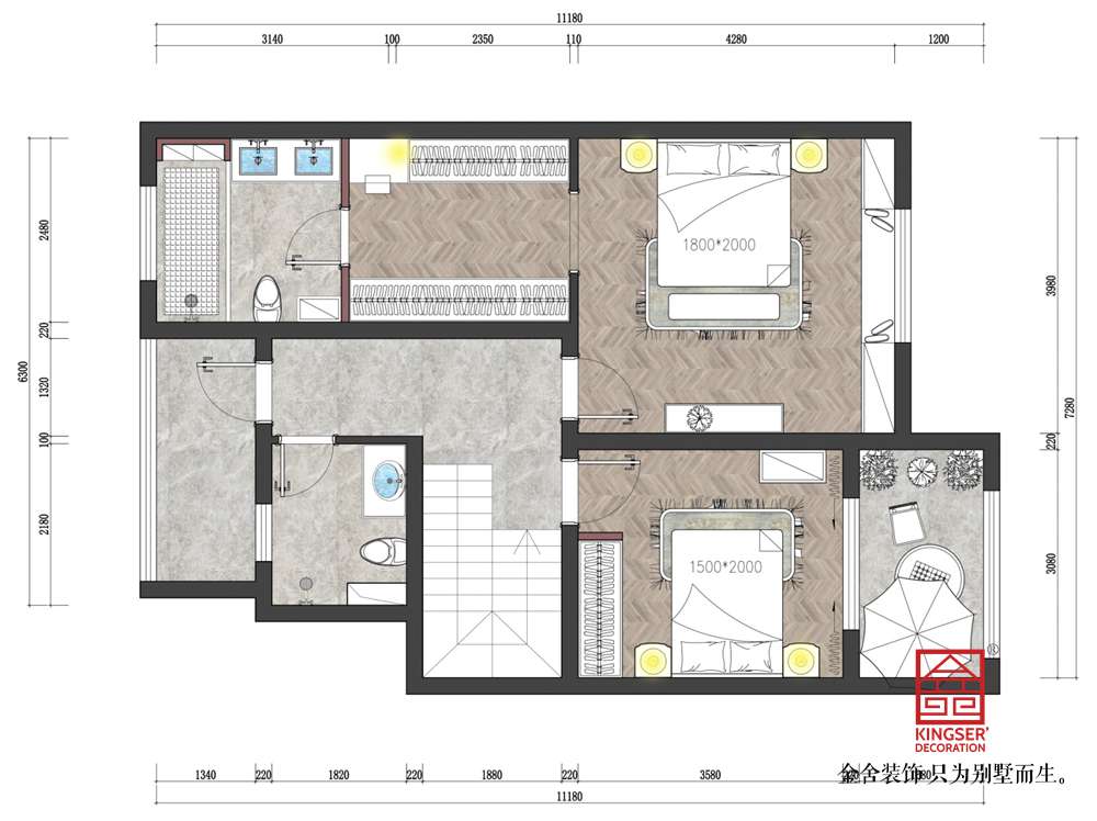 1.合理劃分主衛和衣帽間面積,縮小主衛面積,擴大衣帽間面積,使其功能需求更加合理