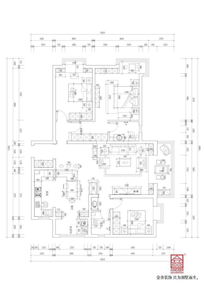 2.客廳開間較小,正常擺放不夠大氣。