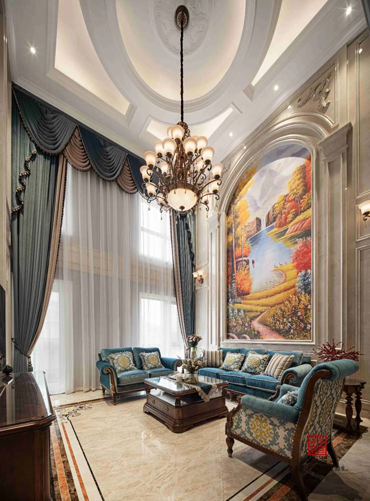 客廳以濃厚的懷舊感情和大膽的革新精神對(duì)歐式古典語匯作了新的闡釋,以極度的挑高加上典雅的家居配飾,把高雅的古典情趣和精巧的浪漫主義聯(lián)系在一起,復(fù)活了歐式風(fēng)格的精魄。同時(shí)在營造歐式風(fēng)格的氛圍時(shí),以一些有特色的軟裝點(diǎn)綴,比如深色的實(shí)木家具,色彩鮮艷的布藝沙發(fā),都是歐式客廳里的主角。自然垂落的窗幔、精美的壁畫……仿佛置身于歐洲宮廷,高貴奢華油然而生。