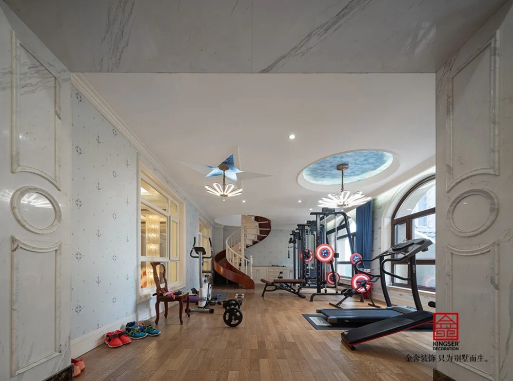 此案例為石家莊金舍裝飾-無極御瓏華府2400平米別墅歐式風格裝修實景。御瓏華府“中西合璧”這是一套集“土建+硬裝+軟裝+庭院”一體的全案設計,占地東西70米,南北50米,整個結構坐落于小區的核心位置,打開家門,先是私有的庭院生活,再而迎面就是小區的綠化水系,視野開闊,一覽全景。方案設計為“中西合璧”風。浪漫的歐式古典風融入東方設計元素,嶄新的文化底蘊得以傳承,既有歐式的富貴典雅又有中式的文化底蘊,二者巧妙應用,提升整個空間氣質。