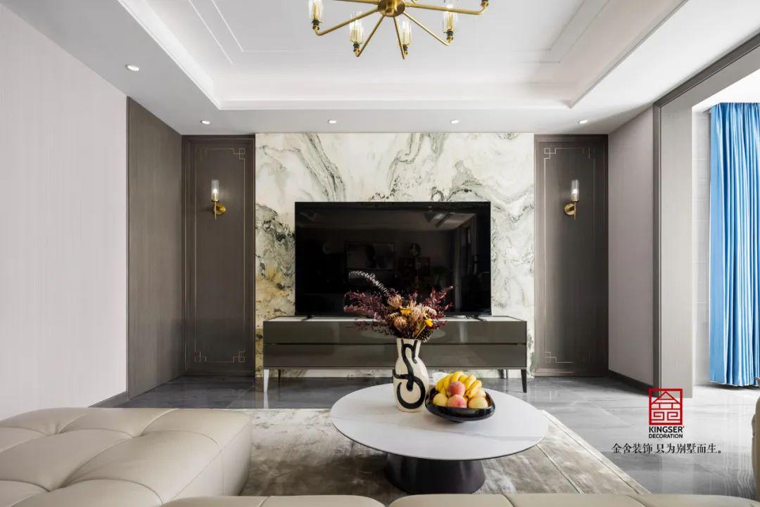 混搭的風格讓空間看起來十分的特殊,現代輕奢的客廳與中式的書房合二為一,客戶是中年夫妻,對于生活還是十分有品味的。