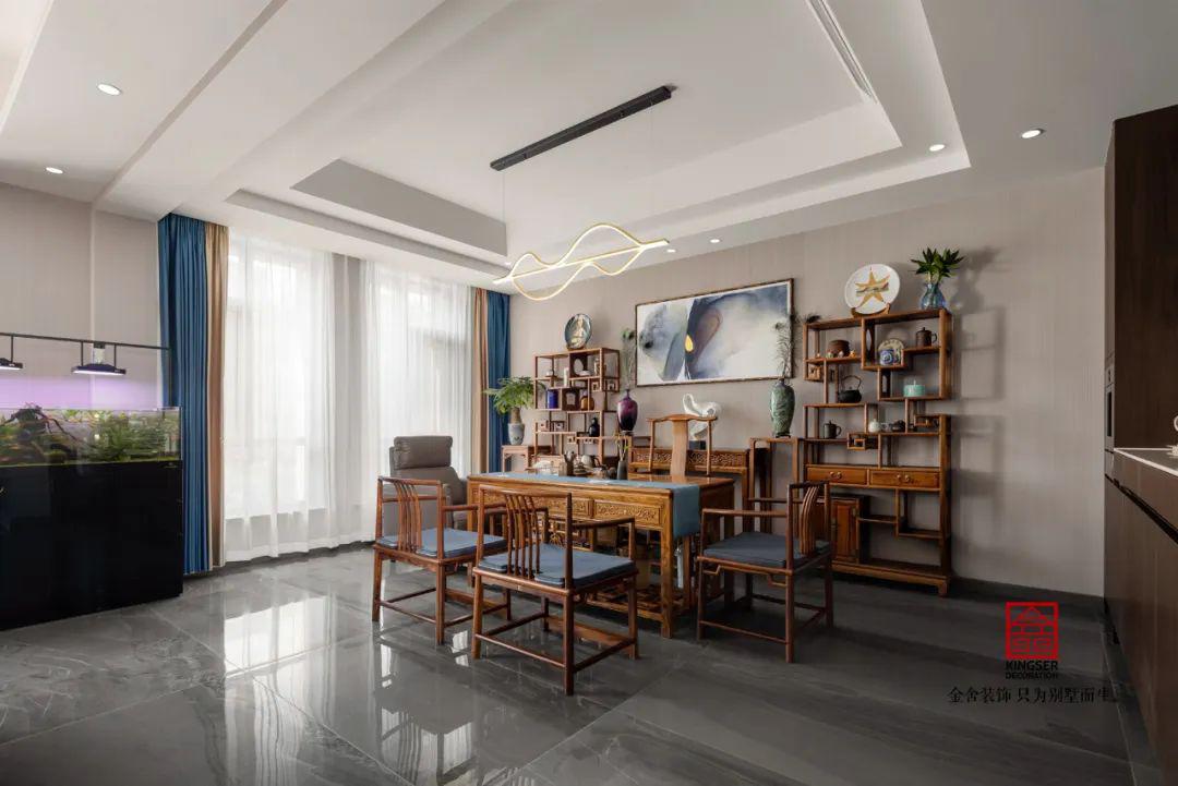書房和喝茶的功能合二為一,喝喝茶,養養魚,寫寫字,陶冶下情操,可以說這就是一個中年人的天堂,隨時都能找到自己的樂趣,隨時都能保持身心最好的狀態。