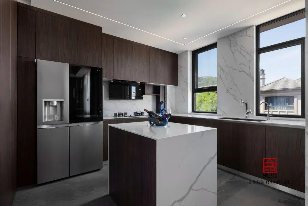 黑白紋理的巖板和同色系的中導臺,在這個空間中透出一種時尚的味道。