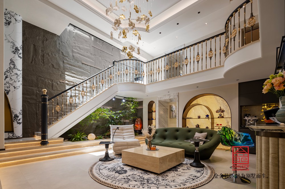 負(fù)二的會客空間充滿自然地氣息,樓梯下方自然水系布景,森系空間倍感親切,在此小坐,聽流水輕響、聞草木清香,仿佛暫別喧囂,讓人不自覺卸下疲憊,享受這份與自然相擁的松弛。