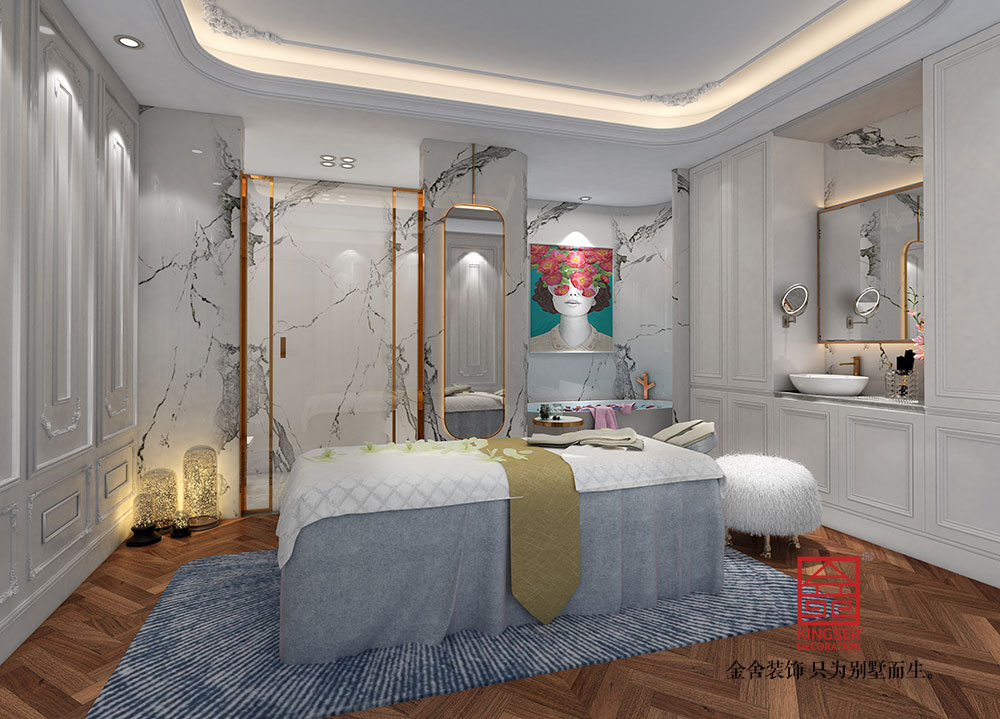 此案例為石家莊金舍裝飾-俏之翼美容院裝修效果圖。俏之翼美容院是石家莊的老牌美容機構,集美容保健與私人整形為一體,配備全面的美容與整形醫(yī)療設備,定位為中高端客戶打造私人訂制的貼身美容解決方案。