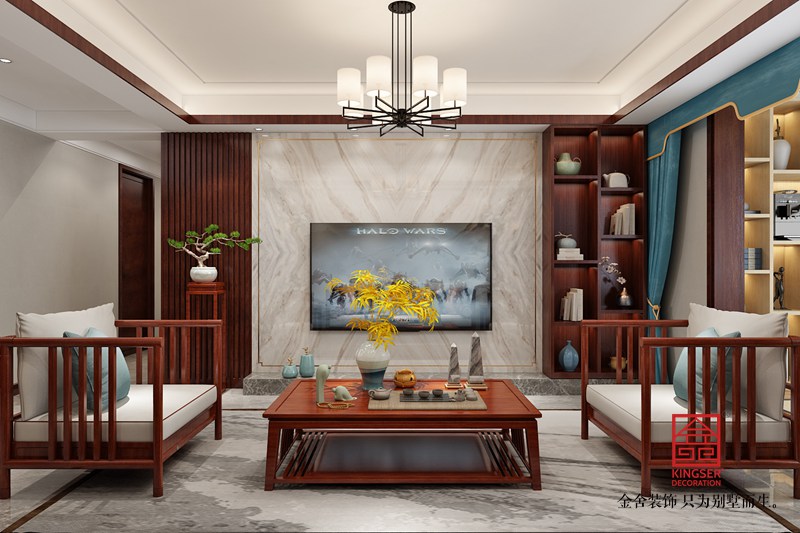 設(shè)計(jì)說(shuō)明:此案例為石家莊金舍裝飾-東南智匯城132平米新中式風(fēng)格裝修圖。新中式風(fēng)格,既是中國(guó)傳統(tǒng)風(fēng)格文化與現(xiàn)代時(shí)尚元素的融合與碰撞,又是在中國(guó)當(dāng)代文化理解基礎(chǔ)上的現(xiàn)代設(shè)計(jì)。因?yàn)樯罘绞降霓D(zhuǎn)變,整體在向現(xiàn)代靠攏,運(yùn)用簡(jiǎn)單的直線條使空間凸顯層次感,加之主人的個(gè)人喜好和品味,完成符合現(xiàn)代人的新中式。沒有太多的造型修飾,利用吊頂來(lái)區(qū)分各個(gè)區(qū)域的功能定位,運(yùn)用軟裝搭配,提升整體的氛圍及品質(zhì)。
