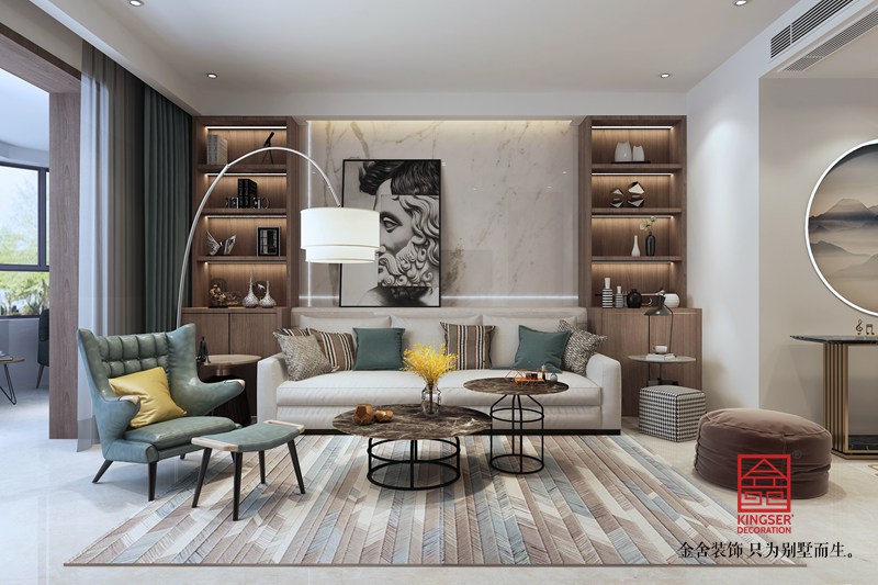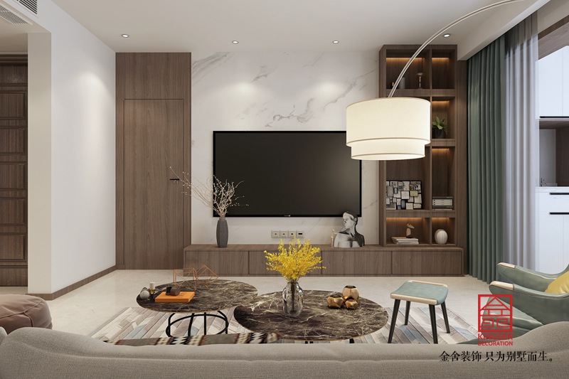 本案為石家莊金舍裝飾-榮盛華府178平米現代風格裝修效果圖。設計倡導簡素的美學主張,空間形體和界面追求簡素、潔凈之美。整個空間被木質的溫暖鋪陳,讓家顯得輕盈柔軟,營造出溫馨、富有生活氣息的家居空間。