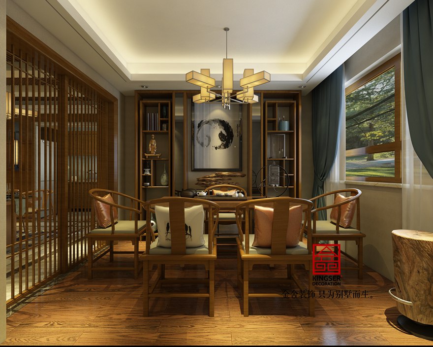 設(shè)計說明:此案例為石家莊金舍裝飾-御河上院255平米中式裝修效果圖。中式古典風(fēng)格主要特征,是以木材為主要建材,充分發(fā)揮木材的物理性能,創(chuàng)造出獨特的木結(jié)構(gòu)或穿斗式結(jié)構(gòu),講究構(gòu)架制的原則,建筑構(gòu)件規(guī)格化,重視橫向布局,利用庭院組織空間,用裝修構(gòu)件分合空間,注重環(huán)境與建筑的協(xié)調(diào),善于用環(huán)境創(chuàng)造氣氛。運(yùn)用色彩裝飾手段,如彩畫、雕刻、書法和工藝美術(shù)、家具陳設(shè)等藝術(shù)手段來營造意境。