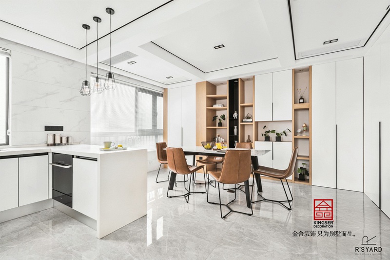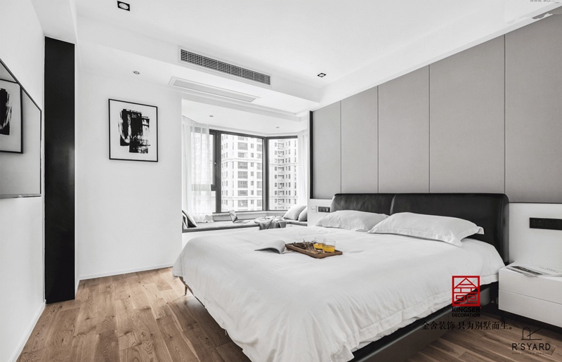 在這套現代簡約高級灰裝修設計說明案例中,走進客廳的一瞬間仿佛是進入了一個藝術畫廊,充滿了東方意境,散發出獨特的韻味。漸變的灰色沙發背景墻,呈現出飄逸流暢的視覺效果。