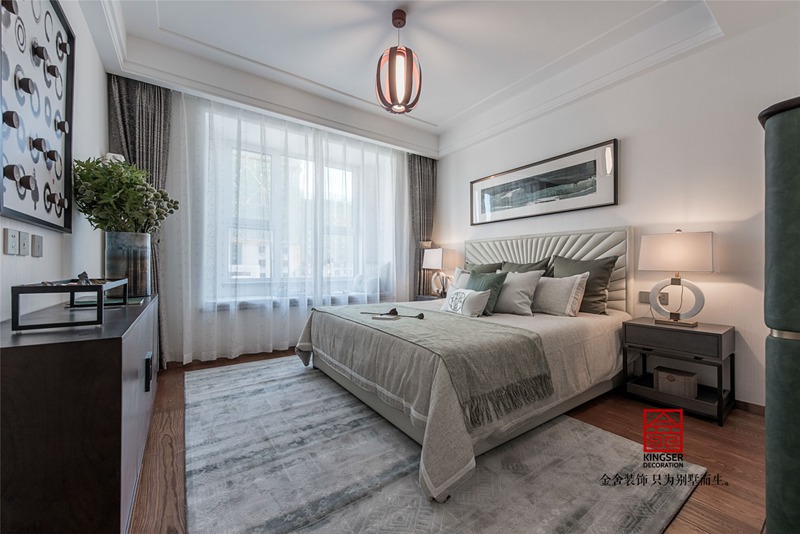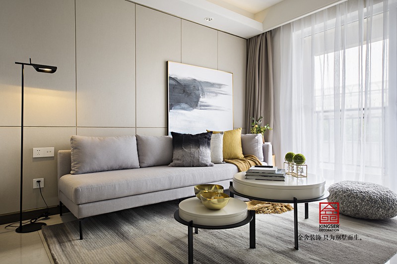 在這套現代簡約高級灰裝修設計說明案例中,走進客廳的一瞬間仿佛是進入了一個藝術畫廊,充滿了東方意境,散發(fā)出獨特的韻味。漸變的灰色沙發(fā)背景墻,呈現出飄逸流暢的視覺效果。