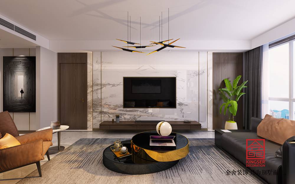 設計說明:此方案為石家莊金舍裝飾-奧北公元134平米現代風格裝修效果圖。業主為年輕新婚夫婦,對新家有無限的美好憧憬,所以在出設計方案的時候更注重顏色以及燈光的舒適度。沒有做太多復雜的造型,只是用天然石材以及護墻板的木紋紋理來襯托出現在風格的時尚氣息。地面瓷磚的鋪貼方式也沒有采用傳統的分空間區域的方式來做造型拼花,而是采用了對工人師傅施工工藝要求很高的波導線繞墻鋪貼方式,這樣從視覺感上擴大了整個空間的空間感。這樣也不會限制家具擺放的位置,后期家具進場后可以根據業主自己的使用喜歡擺放不同的角度。