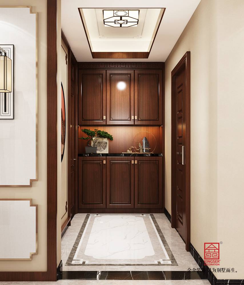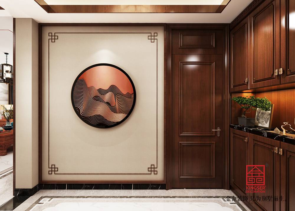 設(shè)計(jì)說明:本案為石家莊金舍裝飾-維多利亞三期166平米中式風(fēng)格裝修效果圖。風(fēng)格定義為中式風(fēng)格,中式風(fēng)格非常講究空間的層次感,在需要隔絕視線的地方,則使用中式的屏風(fēng)、中式木門、工藝隔斷、簡約化的中式“博古架”,通過這種新的分隔方式,展現(xiàn)出中式家居的層次之美,客餐廳空間添加了中式山水畫祥云圖案元素,使整體空間感覺更加豐富,大而不空、厚而不重,有格調(diào)又不顯壓抑。
