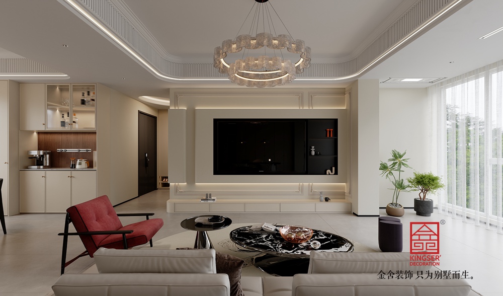 設計說明:此案例為石家莊裝修公司-國賓壹號108平米美式風格裝修效果圖。簡美風格的特色是將設計的元素、色彩、照明、原材料簡化到最少的程度。但是對材料的色彩質感要求很高。因此,簡約的空間設計非常含蓄,往往能起到以少勝多,以簡勝繁的效果。藝術創意宜簡不宜繁,宜藏不宜顯(齊白石語),這些都是對簡潔最精辟的闡述。簡約的美式風格,一般稱為簡美,少了雕花多了現代元素,在古典美式的基礎上,加入現代元素,以明晰的線條、得體有度的裝飾,讓家居空間既有美式的韻味又有現代的簡約感。