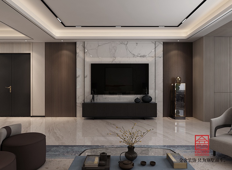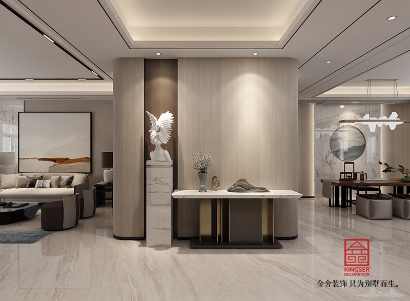 此案例為石家莊金舍裝飾-榮盛華府205平米中式輕奢裝修效果圖。