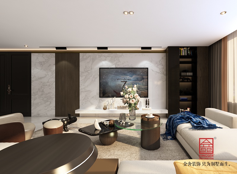 本方案是石家莊裝修公司-中冶德賢公館208平米港式風格裝修效果圖。圍繞港式輕奢為主題 輕奢概念起源于時尚圈,高端定位。有自己獨特的味道,面對大眾日漸提高的審美,室內設計也逐漸轉向了獨特的定制化現代輕奢設計。色彩上素雅和諧,在視覺上不會出現大面積飽和鮮艷的色彩,大多以素雅清新的顏色為主,訴說高雅品位的生活方式,陳設不過于浮夸,純粹的色彩配光影的變化,婉約別致。 材質運用輕奢風格注重設計手法上的簡潔、大氣,但并非忽視品質和設計感,而是通過材質上的奢華,不著痕跡地透露出對于精致、考究生活的追求。大理石、黃銅元素、絲絨、皮飾、瓷磚等,都可以經過巧妙地混搭和組合,讓空間的奢華感上升到一個新高度。