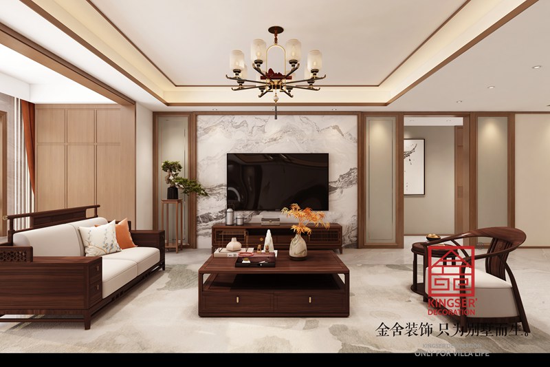 此案為漢王府新中式裝修設計案例,當東方美學邂逅西式構造,引山水自然入室內,打造悅心之居。本案住宅,布置分為客餐廳、主臥、兒童房以及客臥。作為對生活的致敬,希望能借此設計喚起對家的歸屬感,不僅打造身之居所,更打造心之屬地。