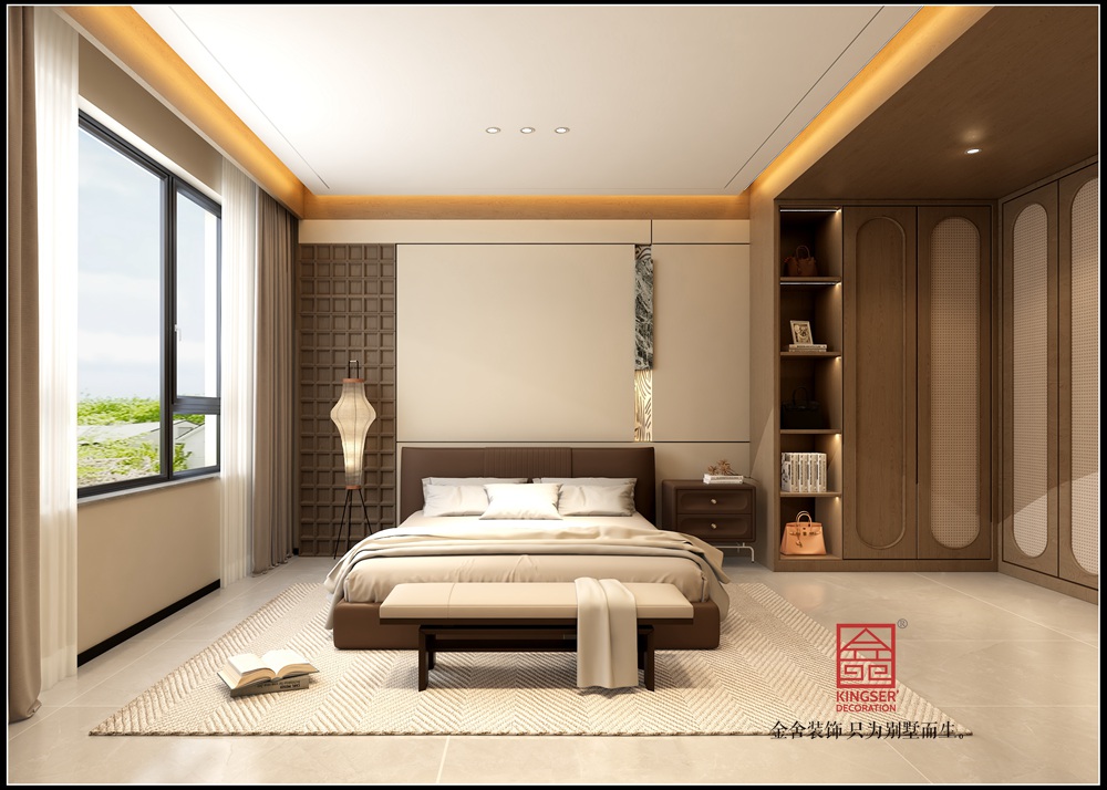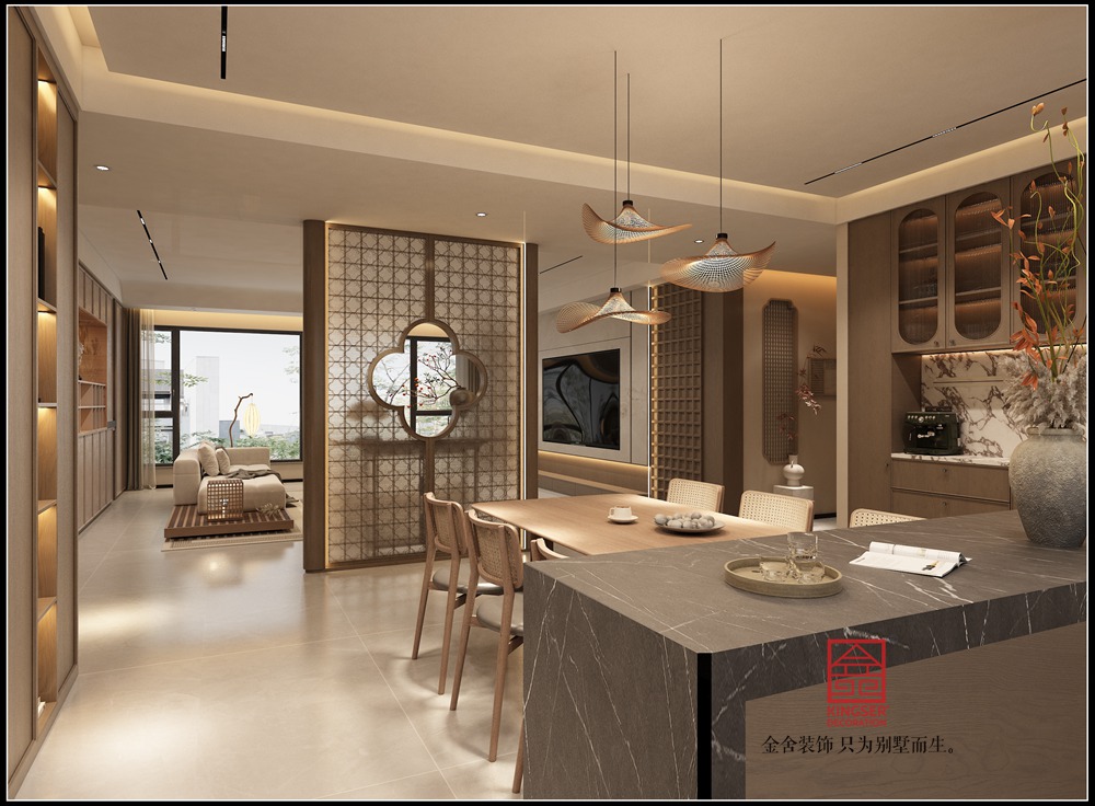 本方案聚焦新中式客廳設計,以傳承與創新為核心思路。空間摒棄繁雜造型,借簡約線條勾勒框架,淺棕、米白等低飽和色調鋪陳,營造溫潤、舒緩氛圍,契合現代人居對寧靜感的追求。