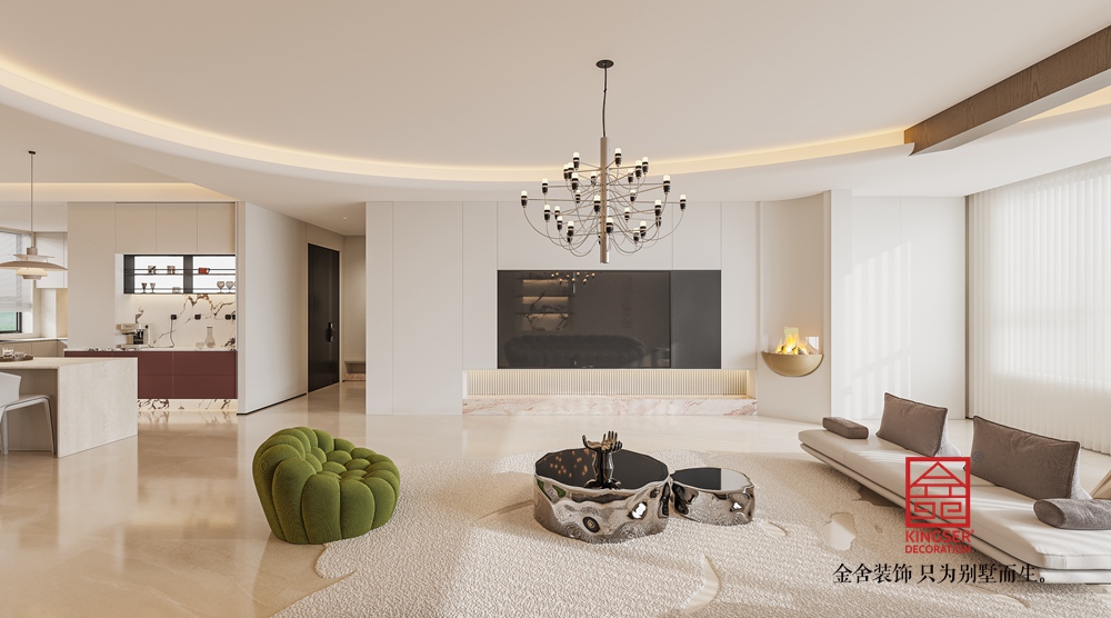 本別墅客廳設計,以現代簡約風格為基調,營造出舒適且富有格調的空間氛圍。