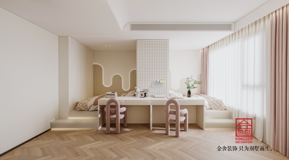 色彩運用上,以柔和的淺色調為主,墻面的白色、地面的米色相互映襯,奠定了空間純凈、雅致的底色。而綠色的造型單椅作為點綴,為空間注入了一抹生機與活力,打破了淺色調可能帶來的單調感;淺灰色的沙發靠枕則在色彩過渡上起到了柔和的銜接作用。