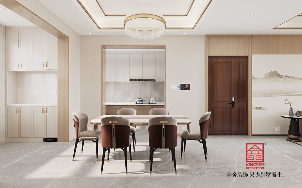 通過對 200 平空間的科學規劃,既保留中式風格的文化底蘊,又以原木的自然質感中和傳統中式的莊重,營造出 “既有古意,又不陳舊;既顯簡約,又含雅致” 的居住氛圍,讓居者在自然舒適的環境中,感受東方美學與現代生活的融合之美。
