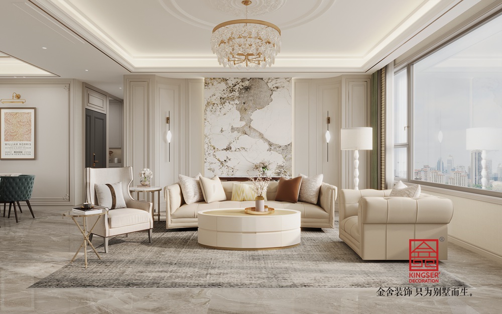 在設計過程中,摒棄了傳統美式可能存在的繁復與厚重,通過精簡線條、優化材質搭配、把控色彩層次,在保留美式風格舒適氛圍的同時,提升空間的時尚度與品質感,打造出既符合現代審美,又能滿足居者對高品質生活追求的居住空間,讓居者在自在愜意中感受輕奢生活的精致與美好。