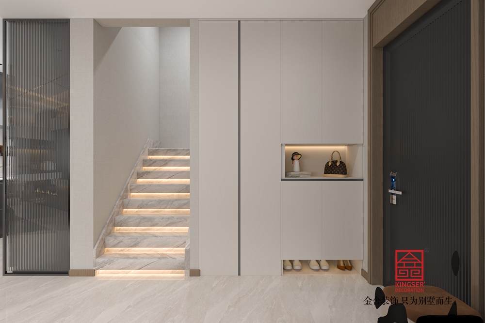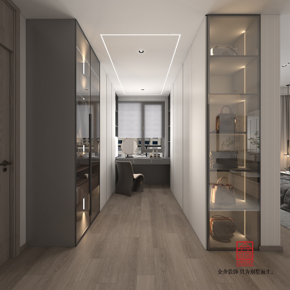 主色調(diào)以淺米色墻面為基底,搭配原木色地板與深灰色家具,形成低飽和度的和諧配色,既顯干凈清爽,又能適配多種軟裝風(fēng)格。