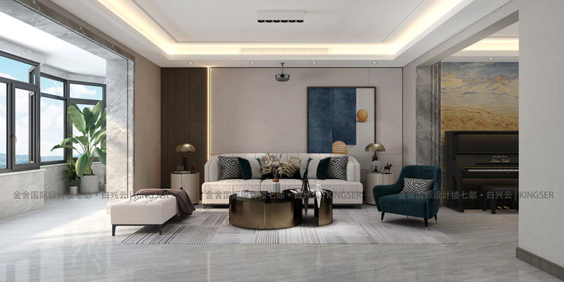 當(dāng)前位置: 首頁(yè) > 裝修案例 > 裝修圖庫(kù) > 榮盛華府現(xiàn)代輕奢效果圖-客廳